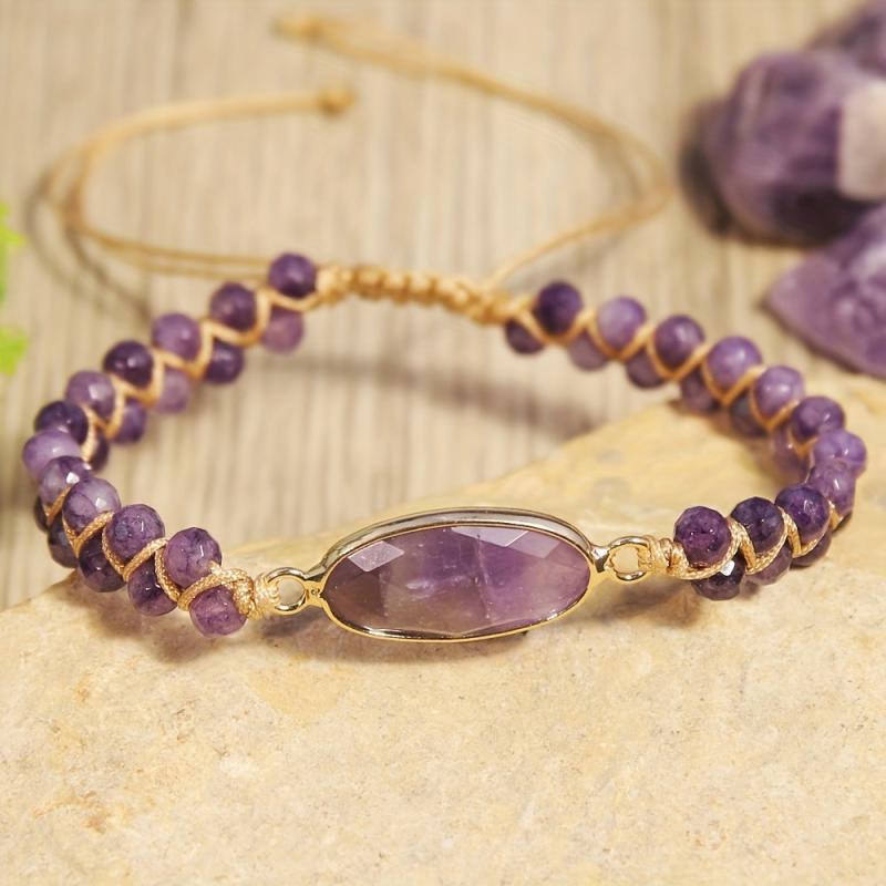 Hannah | Amethyst Bohemian Bracelet with Golden Accents